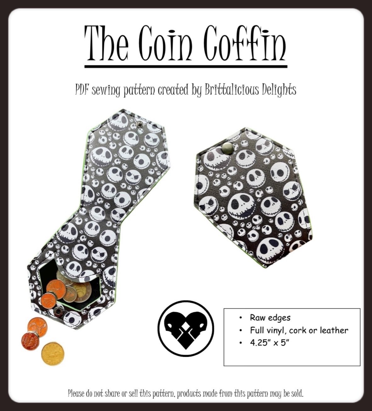 You now are able to create your own Coin Coffin with this very beginner friendly sewing pattern, Domestic and industrials are both able to be used.